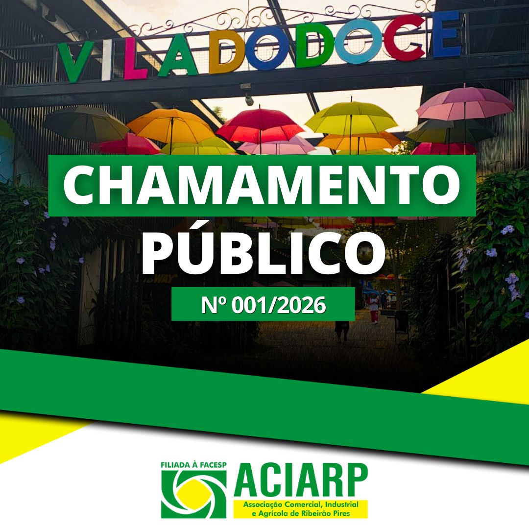 A ACIARP, no uso das atribuições que lhe são conferidas, torna público o edital de chamamento para a locação de quiosque no Complexo Turístico Vila do Doce.