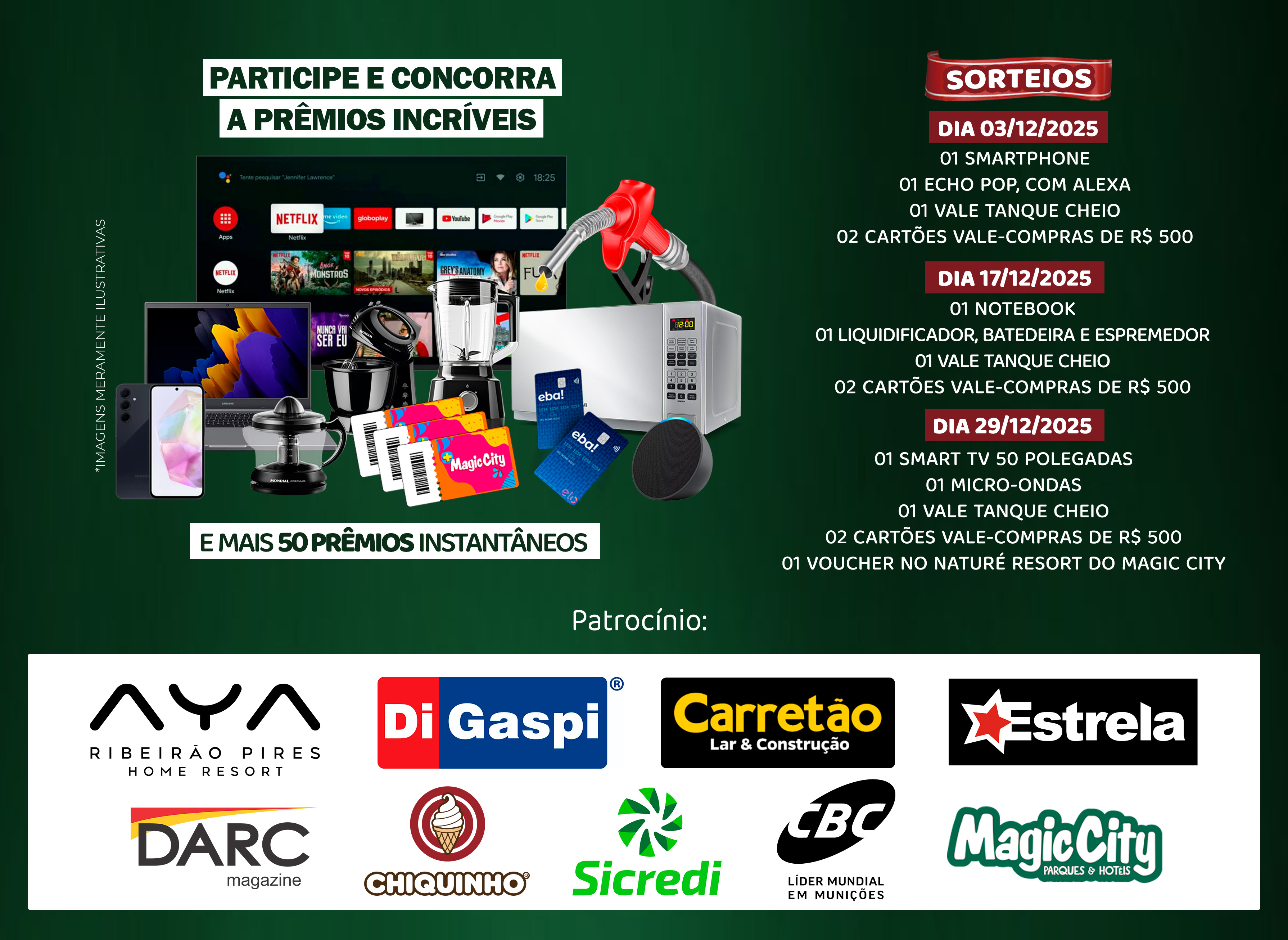 Natal Mágico Premiado 2025 Promoção Regulamentada pela Secretaria de Prêmios e Apostas SPA/ME CERTIFICADO DE AUTORIZAÇÃO SPA/ME N.° 06.046033/2025 PROMOÇÃO N.° 2025/08735