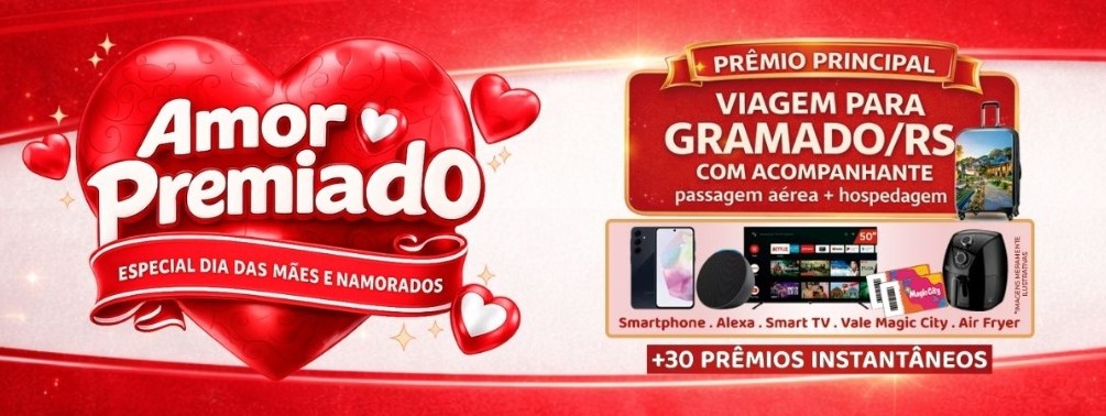 A campanha promocional “Amor Premiado” promete atrair consumidores, impulsionar as vendas e distribuir diversos prêmios. A cada compra realizada, os clientes recebem cupons para participar, tornando cada compra uma nova chance de ganhar.